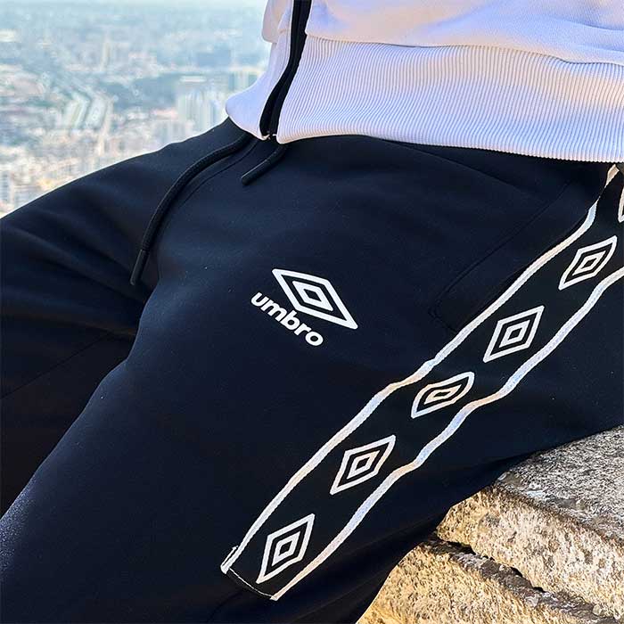 Finitions soignées : logo Umbro visible, design noir élégant avec touches contrastantes